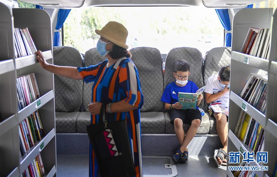 8月5日,長春市民在“流動圖書館”里看書。三千冊圖書,一輛大巴車,穿梭在城市的街頭巷尾。在吉林長春,長春市圖書館利用流動圖書車,定期在市內(nèi)15個固定服務(wù)點(diǎn)間巡回流動,為市民提供便捷的圖書借閱服務(wù)。新華社記者許暢攝