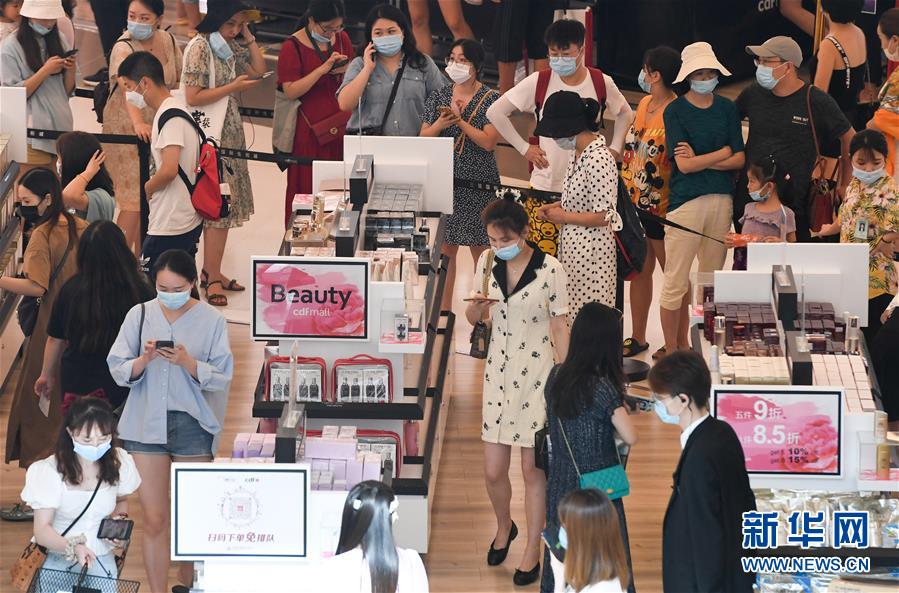 8月6日,游客在三亞國(guó)際免稅城購(gòu)物。新華社記者楊冠宇攝