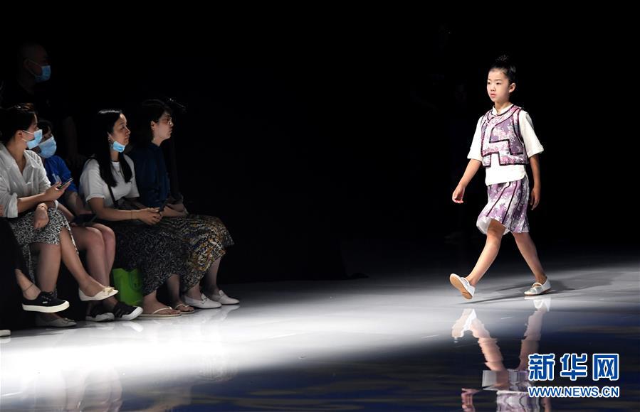 8月7日,小模特在T臺上展示童裝。當日,2020中國(河南)國際大學生時裝周舉行童裝設(shè)計專場展示。8月5日至7日,2020中國(河南)國際大學生時裝周在河南省新密市豫發(fā)密蘭小鎮(zhèn)舉行。新華社記者朱祥攝