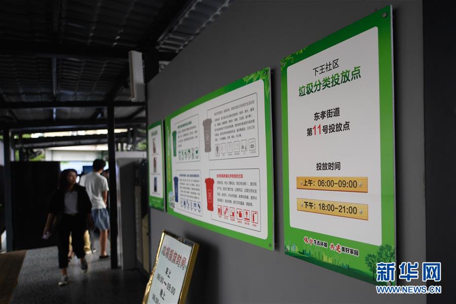 在金華市金東區(qū)東孝街道一社區(qū)拍攝的垃圾分類(lèi)投放點(diǎn)(7月16日攝)。近年來(lái),浙江省通過(guò)創(chuàng)新宣傳教育,多措并舉促進(jìn)垃圾分類(lèi)投放、收運(yùn)及處置的良性循環(huán),引領(lǐng)垃圾分類(lèi)成為城鄉(xiāng)居民的生活新風(fēng)尚。新華社記者黃宗治攝。