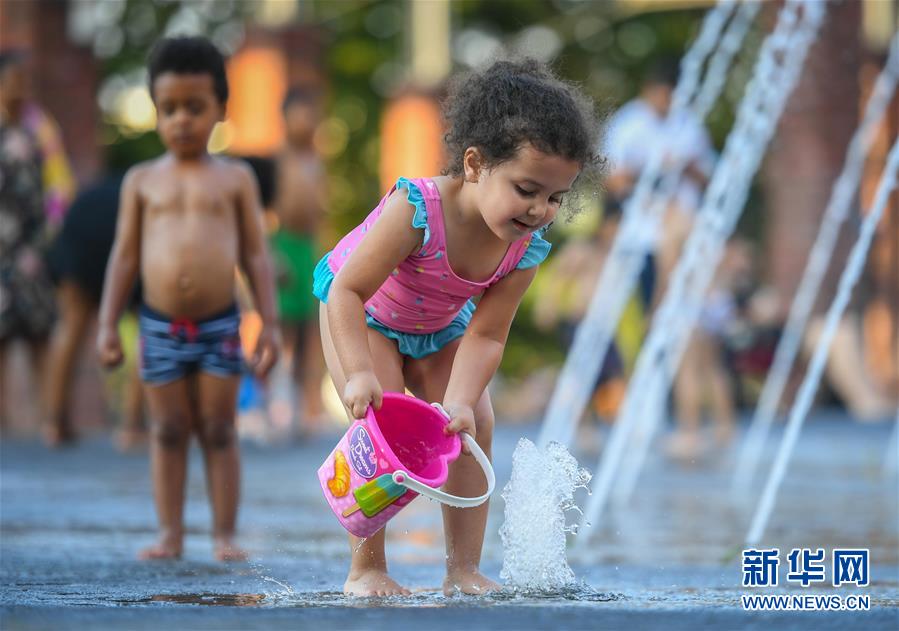 8月8日,一名兒童在德國法蘭克福一處噴泉內(nèi)戲水。 當(dāng)日,法蘭克福遭遇高溫天氣,最高氣溫達(dá)37攝氏度。 新華社記者 逯陽 攝