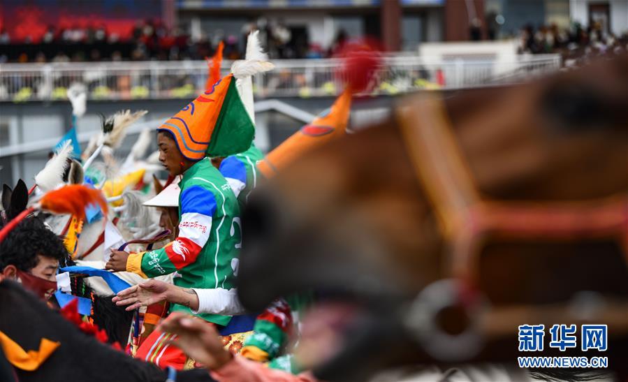 當(dāng)日,“當(dāng)吉仁”賽馬節(jié)比賽之一的五公里馬長跑比賽在西藏拉薩市當(dāng)雄縣賽馬場(chǎng)舉行。一年一度的“當(dāng)吉仁”賽馬節(jié)8月8日在平均海拔4300米的當(dāng)雄縣開幕,來自當(dāng)雄草原的牧民,騎著自家的馬匹參加比賽,策馬揚(yáng)鞭,一決高下。
