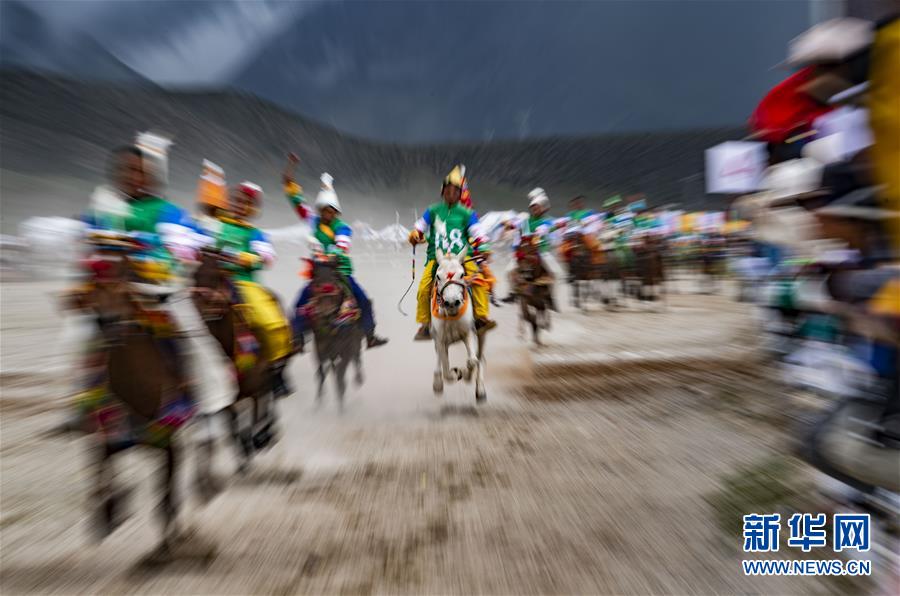 8月10日,騎手馳騁在當(dāng)雄縣賽馬場(chǎng)。新華社記者晉美多吉攝。