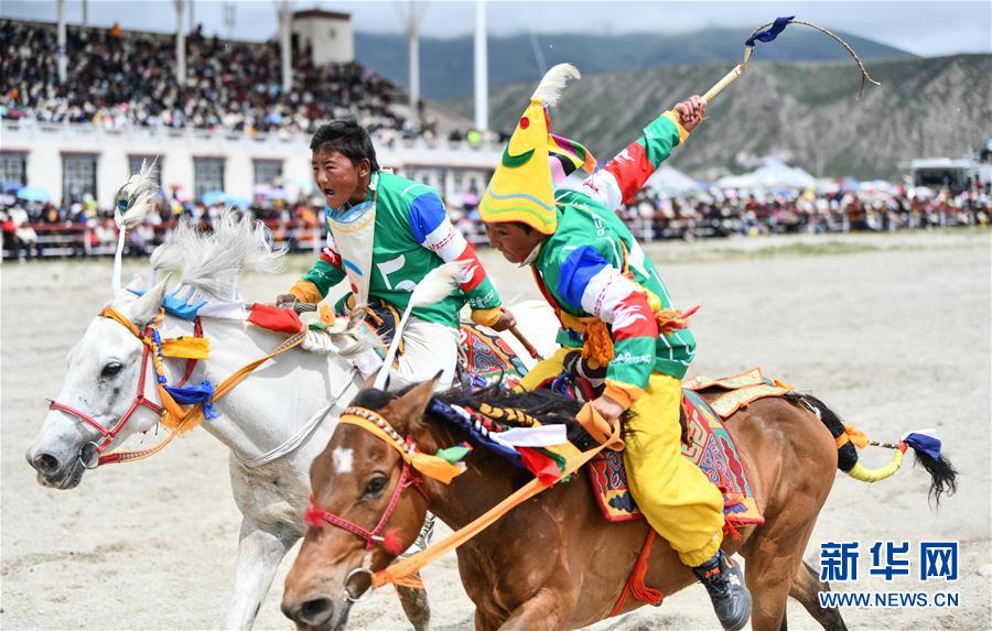 8月10日,騎手馳騁在當(dāng)雄縣賽馬場(chǎng)。