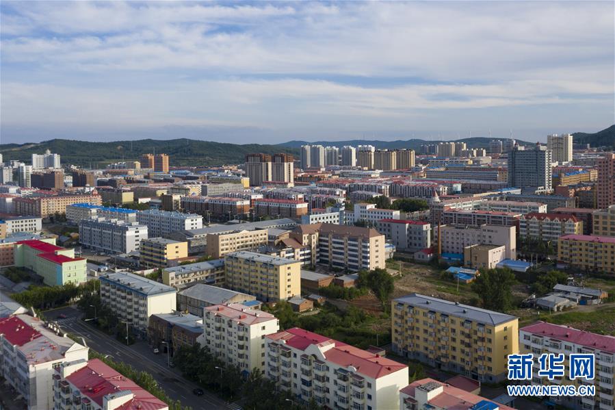 這是8月8日拍攝的撫遠(yuǎn)市市區(qū)景色(無(wú)人機(jī)照片)。新華社記者謝劍飛攝。