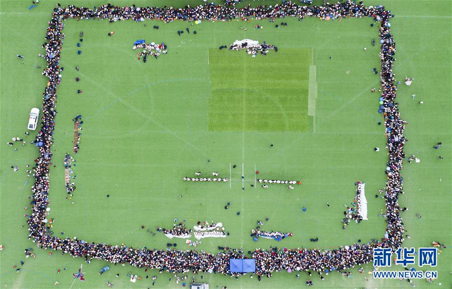 這是8月10日拍攝的拔河比賽現(xiàn)場(無人機照片)。新華社記者普布扎西攝。