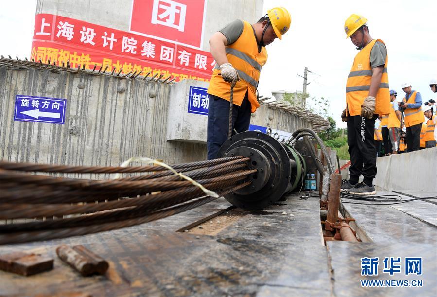 8月12日,中鐵一局施工人員在轉(zhuǎn)體梁轉(zhuǎn)體施工現(xiàn)場作業(yè)。新華社記者 劉軍喜 攝