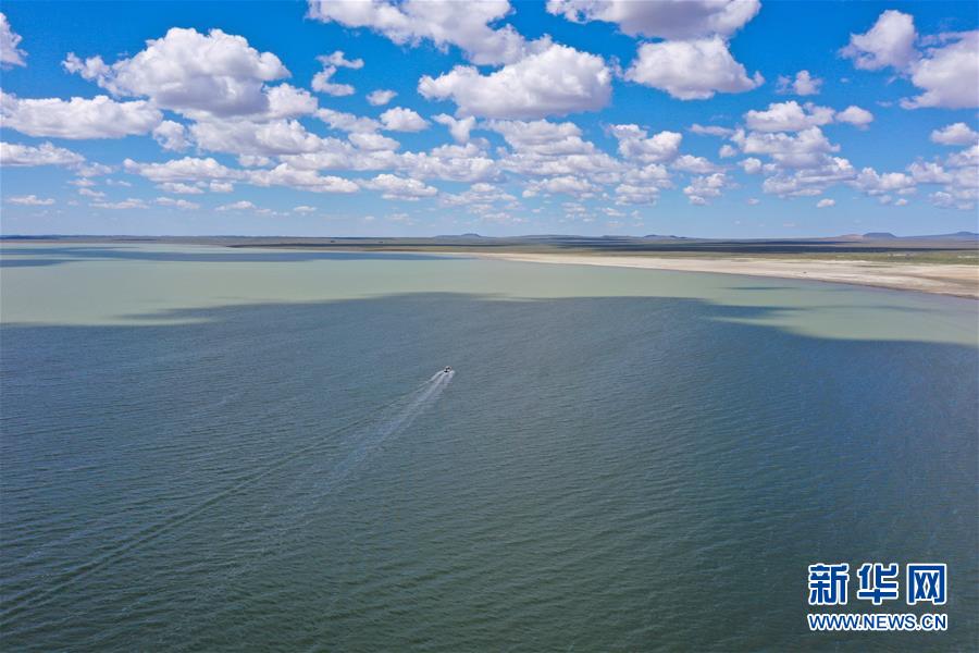 8月11日,游客在克什克騰旗達(dá)里諾爾湖乘坐快艇游玩(無人機(jī)照片)??耸部蓑v旗位于內(nèi)蒙古自治區(qū)赤峰市西北部,境內(nèi)的湖泊、河流、草原、森林等自然景觀,讓人們流連忘返。新華社記者徐欽攝
