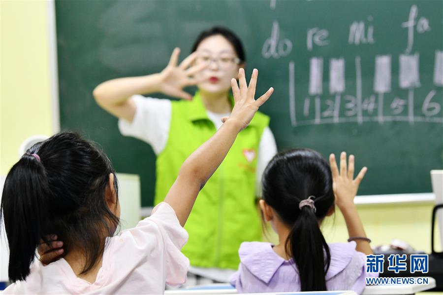 8月13日,貴州省思南縣雙塘街道麗景社區(qū)易地扶貧搬遷安置點(diǎn)的孩子們在上音樂課。新華社記者楊文斌攝