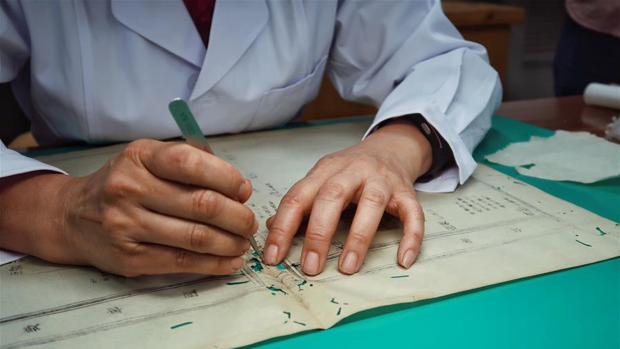 5月12日,浙江諸暨龍溪村的百歲老人蔡渭東在家中處理竹篾。