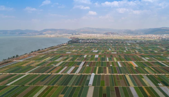 時下正值農(nóng)忙時節(jié),云南省玉溪市通??h的農(nóng)作物長勢喜人,秀美田園春色組成一幅色彩斑斕的畫卷。