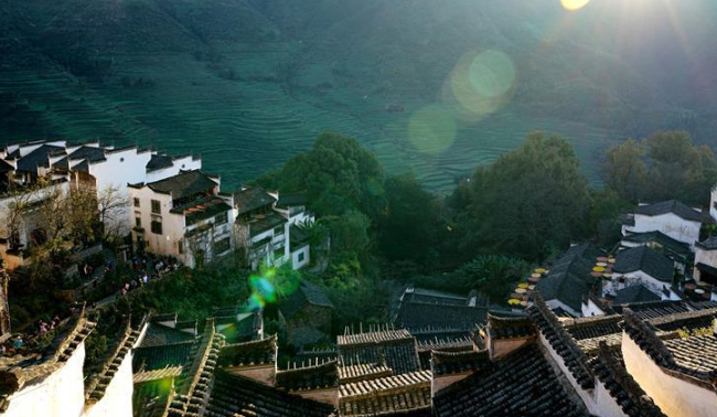 雨后放晴的江西婺源縣,藍天白云與依山傍水的徽派古村落形成了一幅幅美麗畫卷。