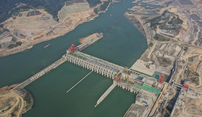 節(jié)日期間,工人們在位于廣西桂平市西江流域黔江河段的大藤峽水利樞紐工程現(xiàn)場加緊施工。