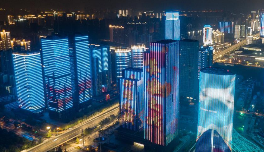 4月8日零時(shí)起,武漢市正式解除離漢離鄂通道管控措施,全市景觀照明開啟(無人機(jī)拍攝)。