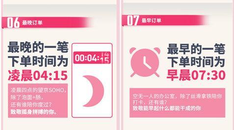 在辦公室下單的時(shí)間也反映了白領(lǐng)們的加班情況。數(shù)據(jù)顯示,北京、上海、廣州、深圳等一線城市毫無懸念的榜上有名,最晚下單時(shí)間是凌晨04:15,最早是早晨07:30。為了出方案、趕項(xiàng)目和完成KPI,他們披星戴月,好在還有數(shù)不清的咖啡和紅牛默默陪伴。