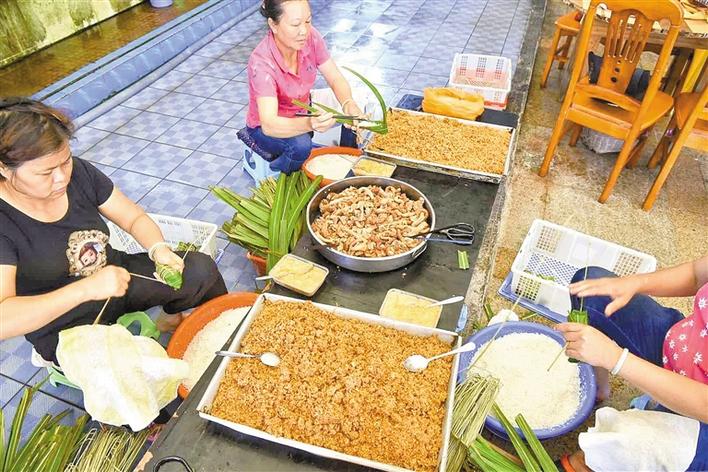 平時(shí),玲姐是一位家庭主婦,每年端午節(jié)前她就變身為“包粽高手”。2017年,張長(zhǎng)妹的酒家創(chuàng)下了銷售海膽粽4萬(wàn)多條的紀(jì)錄,最高峰的一天足足包了4000多條海膽粽,玲姐一個(gè)人就包了1000條,也創(chuàng)下了個(gè)人紀(jì)錄?!皬脑缟?點(diǎn)包到晚上差不多12點(diǎn),最后腰都快直不起來了。”玲姐說,從六七歲就開始看著家里的大人包海膽粽,南澳人包粽技巧都是靠耳濡目染,“小時(shí)候,家里老人不讓我們包糯米,只能用沙子來練習(xí)?!?/p>