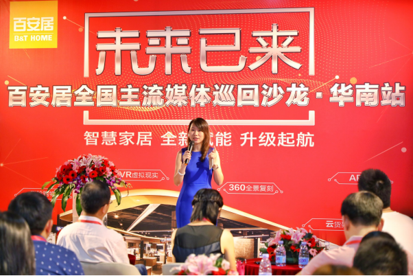 百安居總部市場(chǎng)部負(fù)責(zé)人沈鳳錦女士帶領(lǐng)華南主流媒體參觀門(mén)店