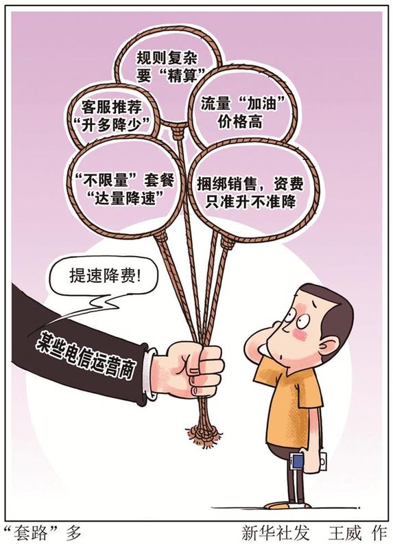 套路五:捆綁銷售,資費(fèi)只準(zhǔn)升不準(zhǔn)降。許多消費(fèi)者在辦理手機(jī)套餐時(shí),運(yùn)營商會(huì)贈(zèng)送寬帶服務(wù),二者資費(fèi)不能單獨(dú)改動(dòng)。深圳王女士去年辦理了某運(yùn)營商的“136元贈(zèng)送寬帶”的電信套餐,但套餐內(nèi)流量只有1GB,且不能更換成其他流量資費(fèi)優(yōu)惠的套餐;如果超流量就必須支付30元1GB的“流量包”。王女士每月實(shí)際通訊費(fèi)超過170元。