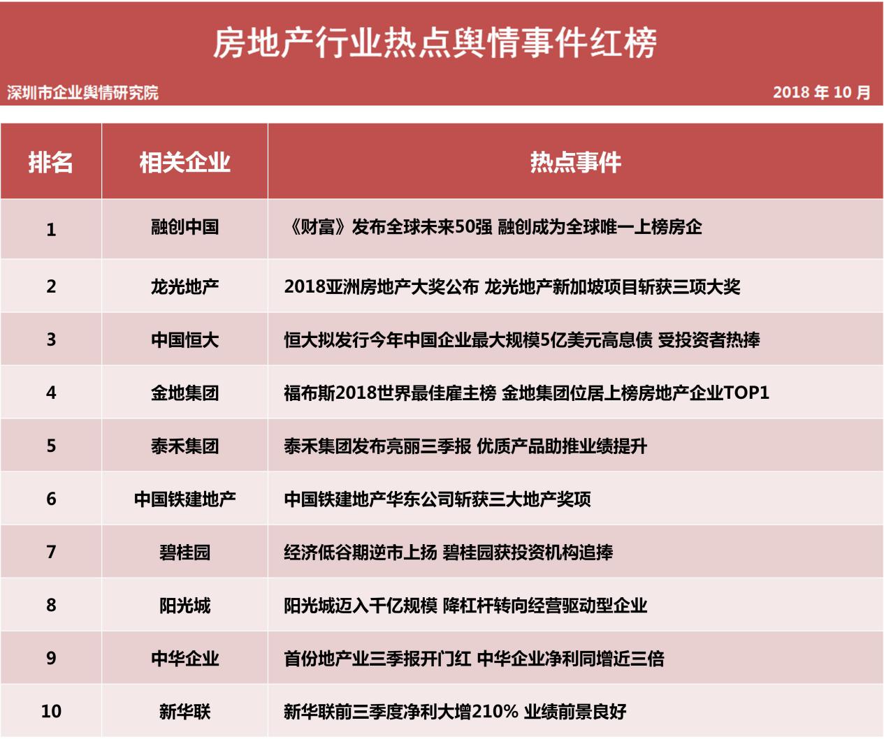 第九批企業(yè)輿情榜單(房地產(chǎn)行業(yè))今日發(fā)布 融創(chuàng)中國上榜《財富》未來50強