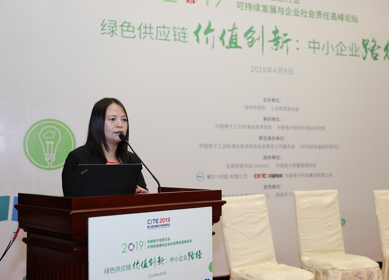 深圳新聞網(wǎng)4月10日訊 4月9日,“中國(guó)電子信息行業(yè)2019可持續(xù)發(fā)展與企業(yè)社會(huì)責(zé)任高峰論壇”在深圳會(huì)展中心成功舉行。本次會(huì)議由深圳市政府、工業(yè)和信息化部主辦,中國(guó)電子工業(yè)標(biāo)準(zhǔn)化技術(shù)協(xié)會(huì)、中國(guó)電子技術(shù)標(biāo)準(zhǔn)化研究院承辦,中國(guó)電子工業(yè)標(biāo)準(zhǔn)化技術(shù)協(xié)會(huì)社會(huì)責(zé)任工作委員會(huì)、《可持續(xù)發(fā)展經(jīng)濟(jì)導(dǎo)刊》(原《WTO經(jīng)濟(jì)導(dǎo)刊》)聯(lián)合承辦,全球貿(mào)易協(xié)會(huì)(amfori)、中國(guó)電子質(zhì)量管理協(xié)會(huì)、戴爾(中國(guó))有限公司、中國(guó)電子科技集團(tuán)有限公司協(xié)辦,論壇還得到了深圳市創(chuàng)新企業(yè)社會(huì)責(zé)任促進(jìn)中心和責(zé)揚(yáng)天下(北京)管理顧問(wèn)有限公司的大力支持。