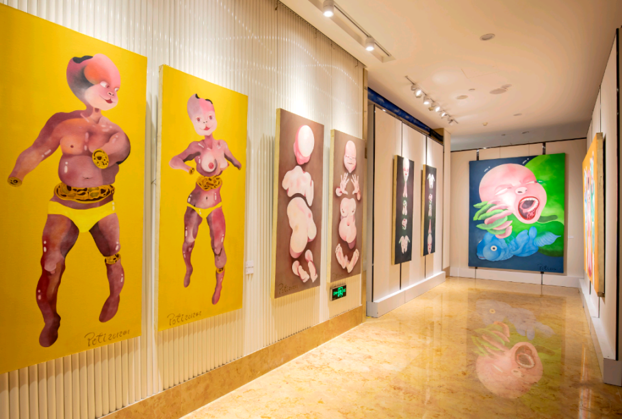 他從不把自己定位在某種藝術(shù)類別里,唯一能夠辨認(rèn)其創(chuàng)作概念的只有“當(dāng)代”一詞,他將自己靈魂深處的叛逆與當(dāng)代藝術(shù)的批判精神結(jié)合,通過鮮艷的色彩表達(dá)出來。畫面中那些擁有怪異表情、扭曲肢體,樣貌分崩離析的“人”,帶給觀眾的是獨(dú)樹一幟的視覺感觸,同時(shí)也呼應(yīng)著作者內(nèi)心的沖突與思考。