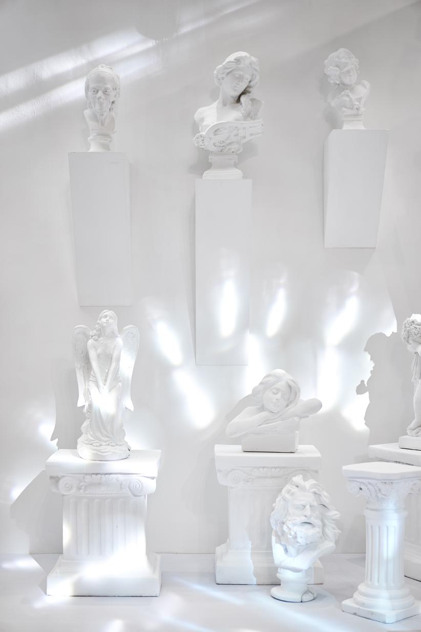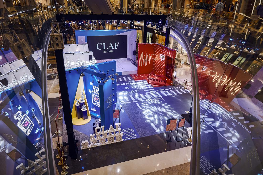 愛之全體驗(yàn)靜態(tài)藝術(shù)展分為四個(gè)區(qū)域,分別對(duì)應(yīng) C-L-A-F(克拉時(shí)刻的英文),C對(duì)應(yīng)白色區(qū)域,代表 C lassic(經(jīng)典 ),在“C lassic”的區(qū)域中,洛杉磯郡藝術(shù)博物館標(biāo)志地標(biāo)-燈柱( Urban Light)與文藝復(fù)興的石膏像相結(jié)合,打造一片純凈又不失時(shí)尚的打卡區(qū)域。L對(duì)應(yīng)紅色區(qū)域,代表Love(愛),設(shè)計(jì)了以“心電感應(yīng)”的一堵墻面,描繪遇到“愛情”的場景,從“正?!钡男碾妶D到遇見“愛”的怦怦心跳,純紅色的背景是打卡拍照的最佳地點(diǎn)。 A對(duì)應(yīng)藍(lán)色區(qū)域,代表Aftertaste(回味),整體背景運(yùn)用國際克萊因藍(lán),形成撞色的沖擊感。利用香水瓶,打造了一個(gè)藍(lán)色的“氣味收藏室”。F對(duì)應(yīng)黑色區(qū)域,代表Forever(永恒),運(yùn)用霓虹燈管打造神秘時(shí)尚的氛圍,就像鉆石一樣在黑暗中閃爍,黑色背景成為許多人打卡點(diǎn),仿佛電影橋段般的文字設(shè)計(jì),非常適合還原電影場景。