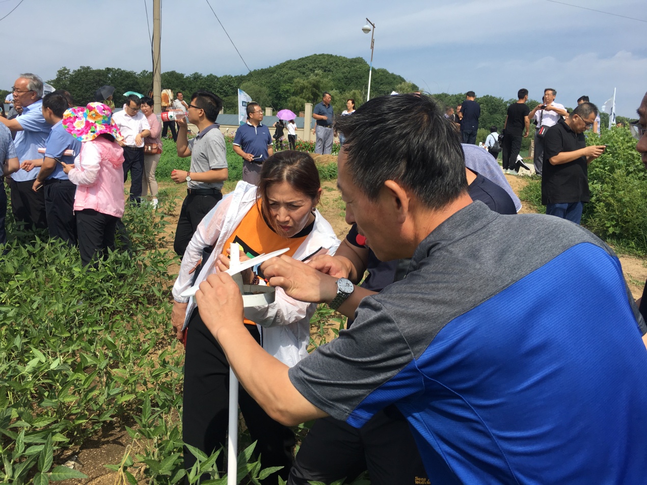 開班儀式前,參會(huì)領(lǐng)導(dǎo)、專家及各省市參會(huì)代表現(xiàn)場觀摩位于敦化市鴻發(fā)現(xiàn)代生態(tài)農(nóng)場的全國生物食誘劑防控大豆食心蟲技術(shù)試驗(yàn)示范區(qū),在示范區(qū)現(xiàn)場觀摩無人機(jī)噴灑生物食誘劑。