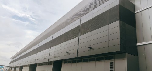遠(yuǎn)遠(yuǎn)望去,深圳國際會(huì)展中心身披“高級(jí)灰”外套,近看發(fā)現(xiàn)這是由一塊塊“超級(jí)大板”拼成的。據(jù)悉,這些寬1.5米、長6米的巨型鋁板比一般建筑所用鋁板厚2毫米,增加了近一倍的厚度,從而大大增強(qiáng)了其防變形能力。