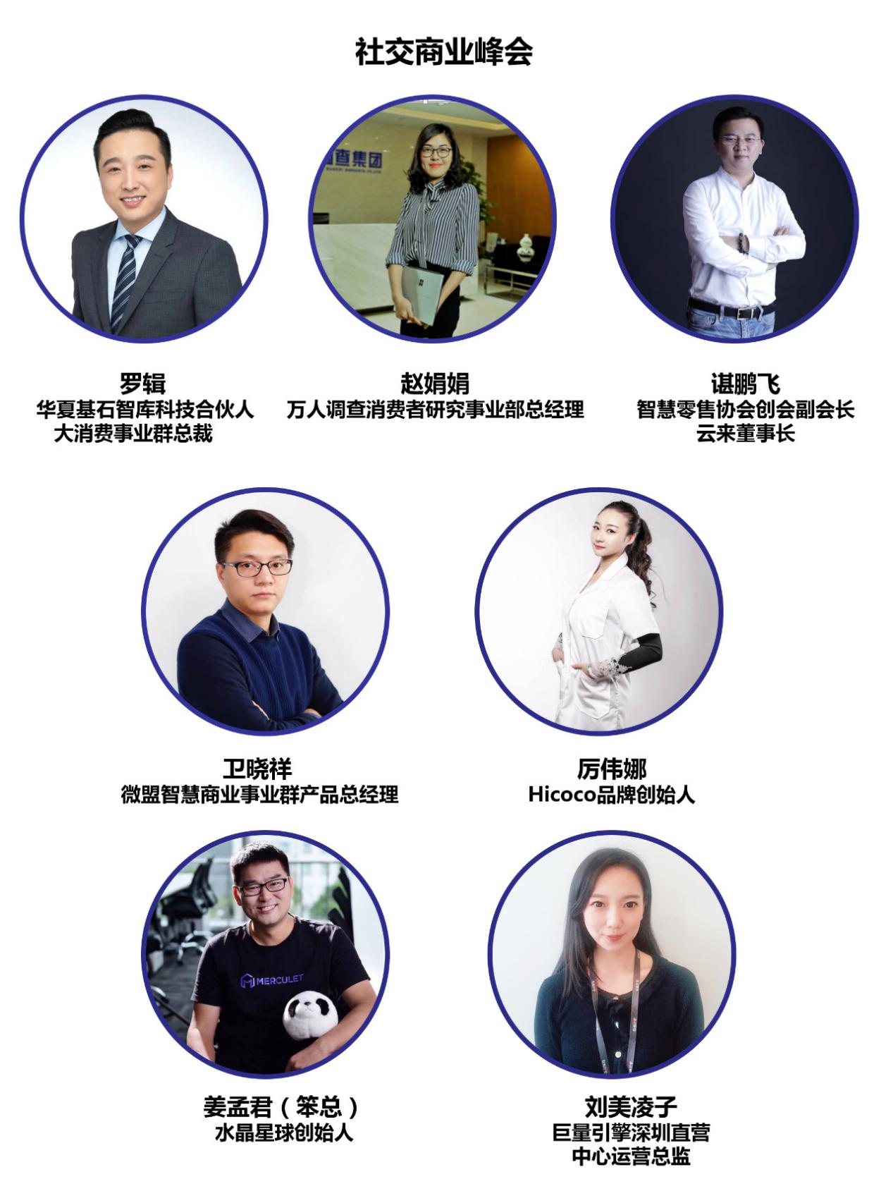 10月30日14:00—17:00(宴會廳Ⅲ)舉行社交電商峰會,華夏基石智庫科技合伙人、大消費事業(yè)群總裁羅 輯主持峰會。萬人調(diào)查消費者研究事業(yè)部總經(jīng)理趙娟娟演講主題《2019年深圳市消費者線上線下渠道消費洞察》,智慧零售協(xié)會創(chuàng)會副會長、特聘專家;云來董事長諶鵬飛演講主題《私域流量社交商業(yè)模式解碼》,微盟智慧商業(yè)事業(yè)群產(chǎn)品總經(jīng)理衛(wèi)曉祥演講主題《企業(yè)布局社交電商的四種模式》,Hicoco品牌創(chuàng)始人厲偉娜演講主題《說說美業(yè)那些事》,水晶星球創(chuàng)始人姜孟君演講主題《社群時代的影響力和業(yè)績增長》,巨量引擎深圳直營中心運營總監(jiān)劉美凌子演講主題《D造營銷新零售助力品牌升級布局》