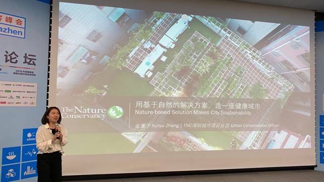 大自然保護(hù)協(xié)會(huì)深圳項(xiàng)目官員張薰予在高峰論壇現(xiàn)場(chǎng)分享海綿城市項(xiàng)目