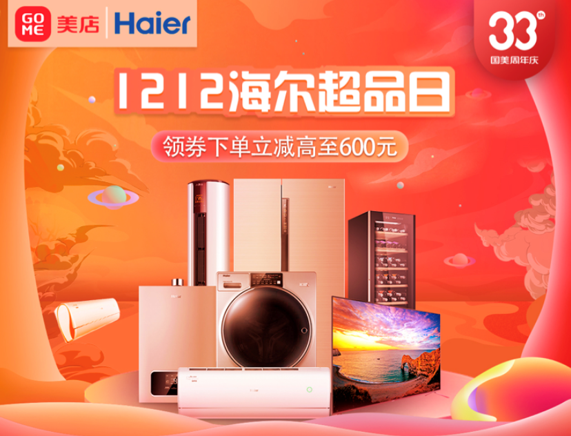 12月12日-15日,33周年生日之際,國美與海爾再度攜手,國美美店帶來1212海爾超級品牌日活動,涵蓋了海爾冰箱、洗衣機、空調(diào)、電視、廚房衛(wèi)浴等多個品類豐富產(chǎn)品,多重優(yōu)惠福利、六大承諾保障、延保清洗服務(wù),其中多個年度爆款值得期待。
