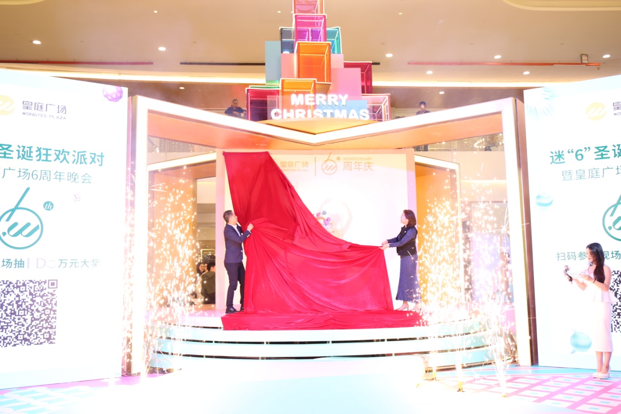 慶典當(dāng)晚,伴隨著圣誕女郎精彩的開場(chǎng)熱舞表演,令人無比期待的六周年藝術(shù)蛋糕,在諸多重量級(jí)嘉賓和現(xiàn)場(chǎng)觀眾的共同見證下,由皇庭商業(yè)管理集團(tuán)副總裁兼皇庭廣場(chǎng)總經(jīng)理關(guān)為泓、中購(gòu)聯(lián)全國(guó)總編輯陳勇堅(jiān)共同揭開幕布,奇光異彩的藝術(shù)蛋糕瞬間驚艷呈現(xiàn)在眾人眼光,也正式宣告“深圳皇庭廣場(chǎng)六周年”狂歡盛典的開啟。