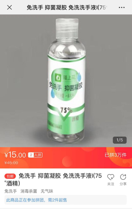 春節(jié)假期進(jìn)入尾聲后,有少部分工廠陸續(xù)復(fù)工。其中有一家來著于蘇寧“拼工廠”的河北企業(yè)與蘇寧拼購?fù)献鳎_足馬力,全力生產(chǎn)酒精含量為75%的免洗手抑菌凝膠。據(jù)蘇寧拼購相關(guān)負(fù)責(zé)人介紹:“蘇寧將根據(jù)最近疫情消費數(shù)據(jù)指導(dǎo)該‘拼工廠’生產(chǎn),預(yù)估未來幾天銷量,讓工廠效率達(dá)到最大?!睋?jù)悉,該款“75%免洗手抑菌凝膠”商品僅2月2日上半日便拼出3萬單。河北“拼工廠”負(fù)責(zé)人表示,目前產(chǎn)能能達(dá)到日均20萬瓶。