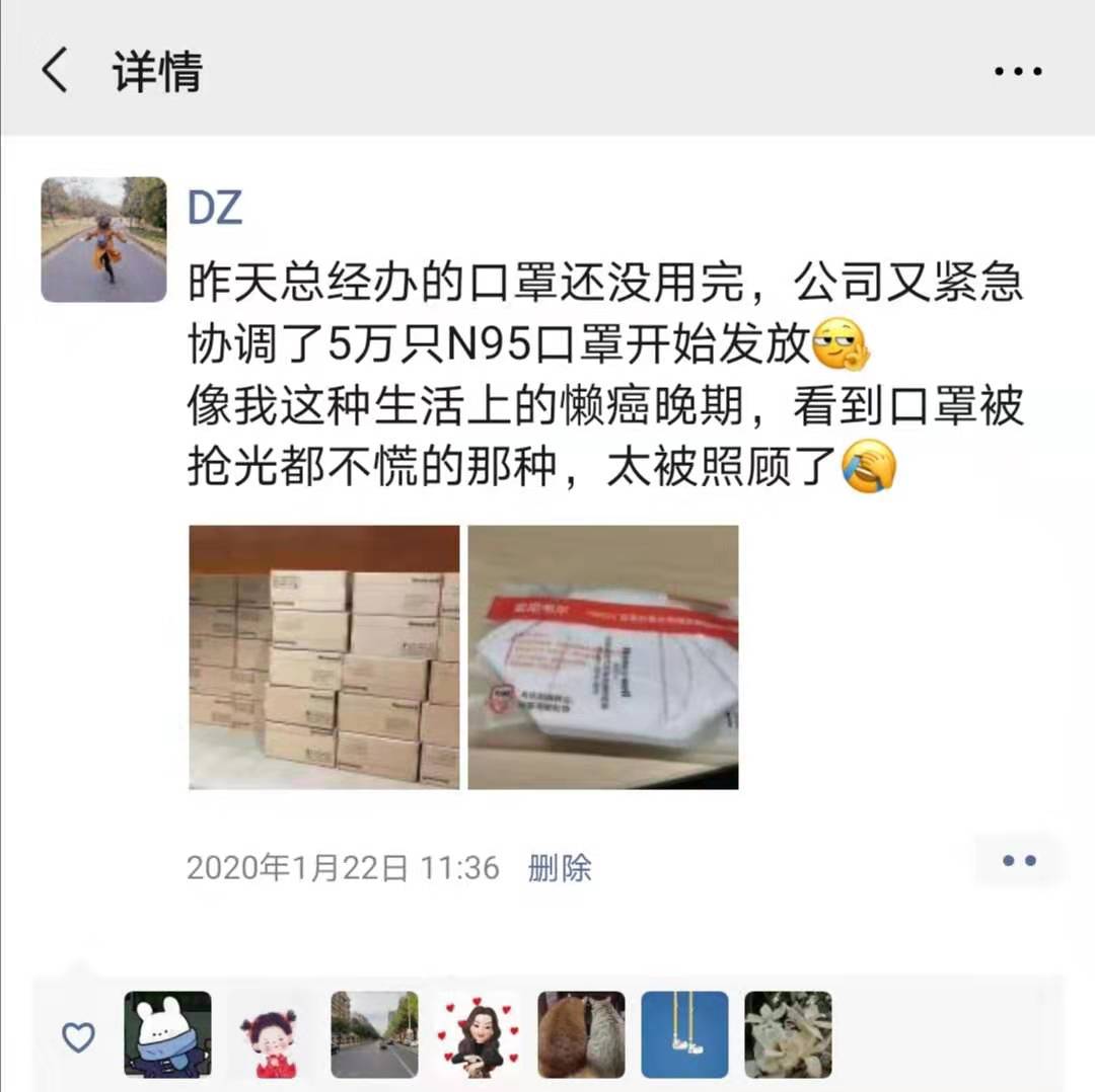 春節(jié)放假前夕,疫情形勢陡然嚴(yán)峻。在蘇寧南京總部工作的小丁清楚地記得,1月2 2 日那天,她在上班的路上,看到戴口罩的人多了起來,還和小伙伴念叨著也要趕緊買些。結(jié)果,當(dāng)天上午,部門就給每人發(fā)了一個全新的N9 5 口罩,讓她倍感驚喜和暖心。原來,蘇寧總部緊急調(diào)集了5萬個口罩發(fā)到員工手中,各大區(qū)也紛紛緊急調(diào)貨給員工發(fā)放。自稱“懶癌晚期”、平時連朋友圈都很少發(fā)的她,忍不住發(fā)圈為公司點贊。