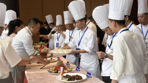 嘉美軒飲食集團(tuán)總裁張品關(guān)代表致詞提到:集團(tuán)致力于弘揚潮汕飲食文化,促進(jìn)潮州菜傳承與創(chuàng)新,而飲食文化傳承離不開烹飪?nèi)瞬诺膲汛?,旗下嘉美軒廚藝學(xué)院,旨在挖掘培養(yǎng)更多烹飪?nèi)瞬?,承辦本次競賽活動就是響應(yīng)廣東省“粵菜師傅”工程實施方案,充分利用深圳區(qū)位優(yōu)勢,選拔優(yōu)秀烹飪?nèi)瞬牛选吧钆娠L(fēng)味菜”的招牌擦得更亮、叫得更響。