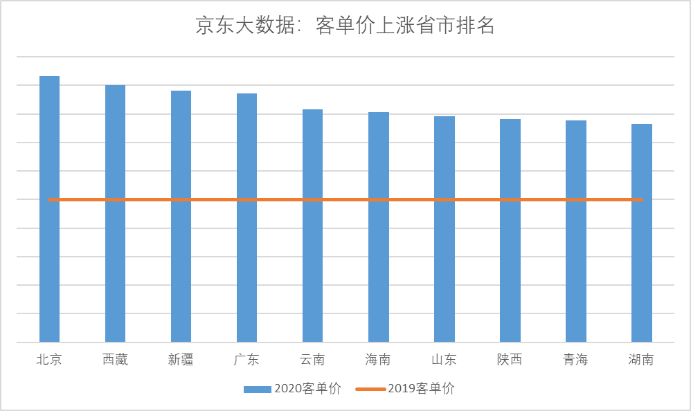 但是,消費(fèi)者采購月餅時(shí)卻呈現(xiàn)出更積極的上升趨勢:據(jù)京東大數(shù)據(jù),今年京東平臺上不但用戶數(shù)大幅增加,其中相當(dāng)大部分新用戶來自低線市場用戶,而且消費(fèi)者相比去年更加追求品質(zhì),大品牌、高規(guī)格的月餅禮盒熱銷,因此月餅平均客單價(jià)比去年上漲了35%以上。下圖可見,除北京廣東等發(fā)達(dá)地區(qū)外,客單價(jià)上漲的主要?jiǎng)恿碜杂谖鞅?、西南和華中等地區(qū)。