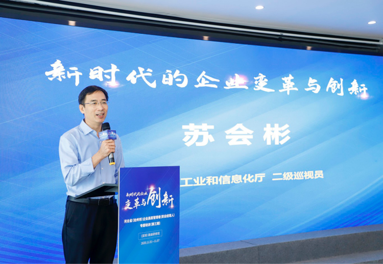 圖為河北省工信廳二級巡視員蘇會彬在開班儀式上講話