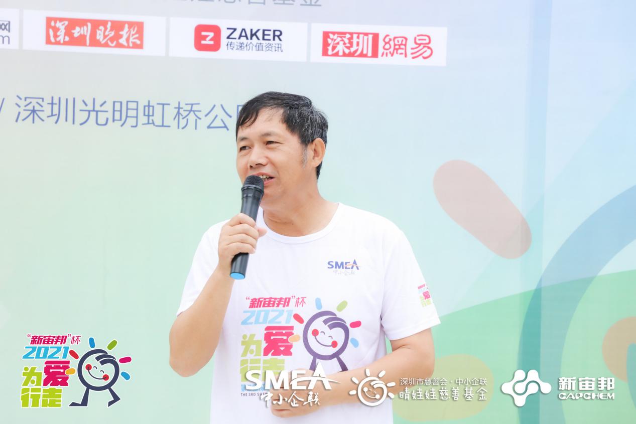 深圳中小企聯(lián)會長、深圳市杰科電子有限公司董事長黃榮添為開幕式致辭。他表示:“感謝新宙邦對本次慈善公益徒步活動做出的貢獻(xiàn),以及今天參加此次活動的愛心企業(yè)家、愛心人士們的大力支持,我代表深圳中小企聯(lián)感謝大家的參與,今后也希望通過各類活動讓更多愛心人士關(guān)注我們“晴娃娃”,給更多的孩子送去關(guān)愛,能讓他們綻放開心的笑容?!?/p>