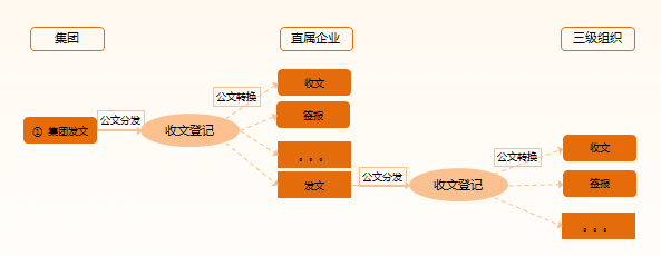 2.公文從集團(tuán)分發(fā)到直屬企業(yè)后,支持單據(jù)轉(zhuǎn)換,便于直屬企業(yè)依據(jù)自己管理模式進(jìn)行相應(yīng)公文處理