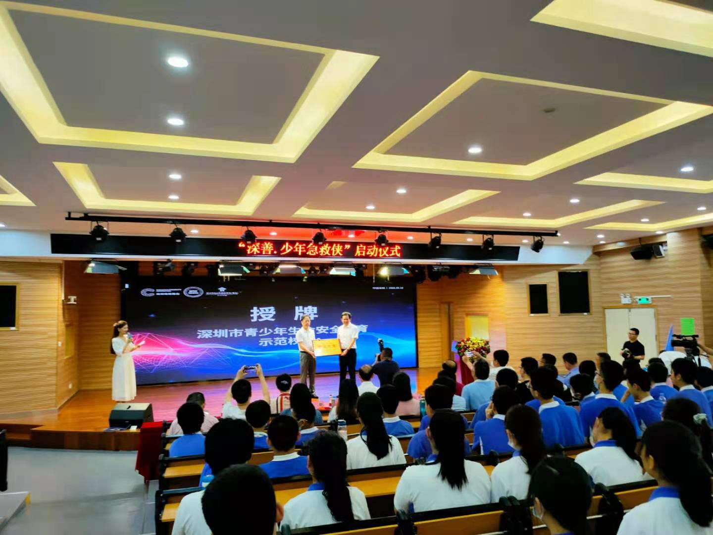 在現(xiàn)場(chǎng),市教育局、市慈善會(huì)與粵美特慈善基金會(huì)共同向南山外國(guó)語學(xué)校(集團(tuán))文華學(xué)校授予“深善·防災(zāi)減災(zāi)示范校園”牌匾。
