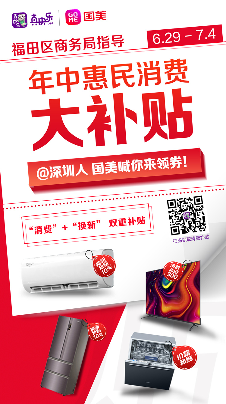 據(jù)悉,為獻禮建黨100周年,在深圳市福田區(qū)商務(wù)局的指導(dǎo)下,深圳國美和“真快樂”APP誠意滿滿的推出了“年中惠民消費大補貼”活動,國美這次“年中消費大補貼”將從6月21日起一直延續(xù)到7月4日,4500萬補貼發(fā)放,助力深圳地區(qū)消費者升級品質(zhì)生活。而且所有活動商品原有低價基礎(chǔ)上進行補貼直降,還有超多驚喜好價等你來搶,此波羊毛絕對放心薅,一起來看看吧!