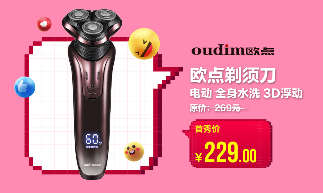 在女生眼中,白白凈凈的男生更具吸引力,而胡子拉碴的男生難免會被貼上不講衛(wèi)生、不愛干凈、不注重自己形象的標簽。鑒于此,“真快樂”APP為男同胞們帶來了一款實力硬核的歐點電動剃須刀,它采用了雙環(huán)圓弧刀網(wǎng),讓剃須更快、更凈、更爽。這樣的心水好物,首秀價只要229元,助你秒變小鮮肉。