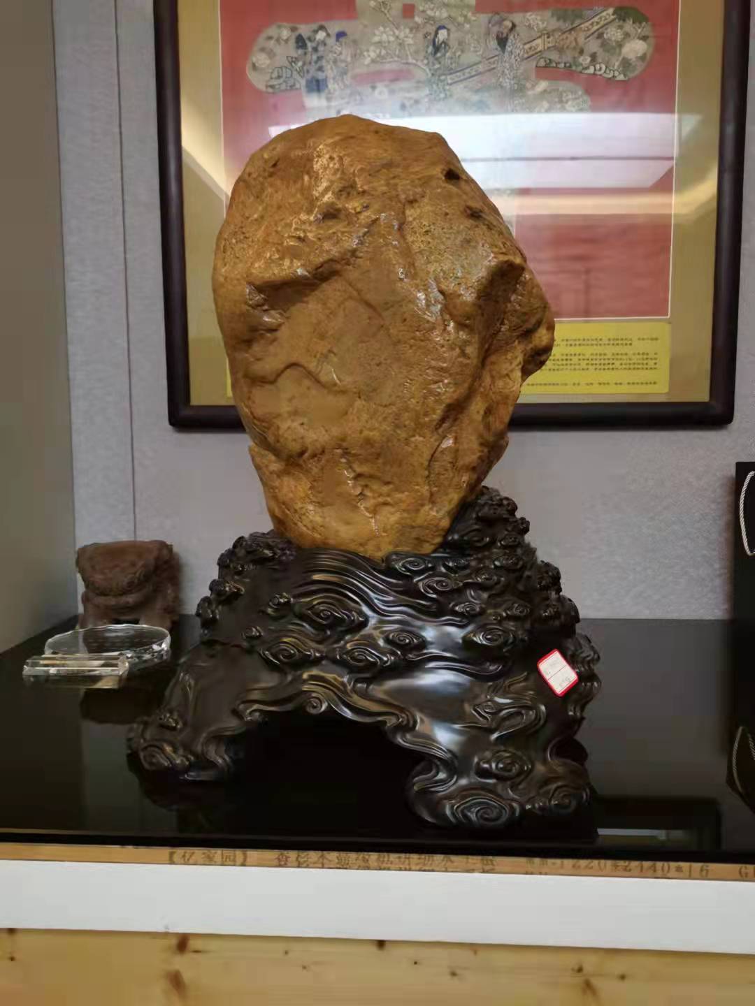 由深圳市希雍天石文化發(fā)展有限公司田黃博物館搭建的田黃展位,位于主會(huì)場(chǎng)深圳國(guó)際會(huì)展中心12號(hào)館福田展團(tuán)聚集地,吸引了不少人的目光,據(jù)了解,展出的163.8斤絕品昌化“雞血田黃”原石,源自浙江昌化,有可能是現(xiàn)今發(fā)現(xiàn)的最優(yōu)質(zhì)大的雞血田黃原石。