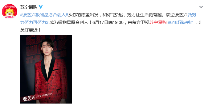 昨日,蘇寧易購官方微博宣布關(guān)曉彤成為蘇寧易購代言人,作為極物星愿合創(chuàng)人,正式入職蘇寧易購。