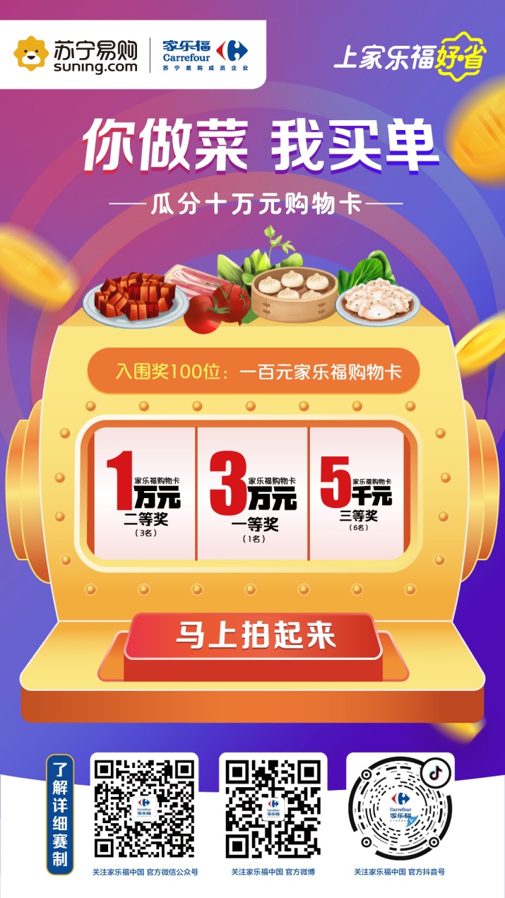 近日,家樂(lè)福發(fā)起“百元大餐表達(dá)愛(ài)”鄰家大廚視頻 PK賽,向廣大消費(fèi)者征集在家下廚的珍貴體驗(yàn)。從前期的悉心挑選食材,到后期的精心烹飪,用百元預(yù)算打造自家饕餮盛宴,傳遞對(duì)至親關(guān)愛(ài)的同時(shí),表達(dá)對(duì)生活的熱愛(ài)。