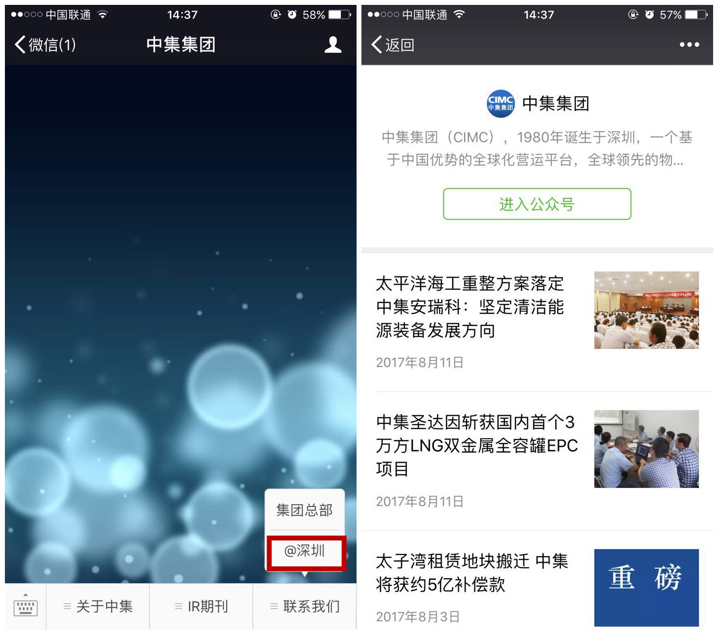 深圳新聞網(wǎng)訊(記者 陳飛)近日,中國國際海運集裝箱(集團(tuán))股份有限公司(簡稱:中集集團(tuán))官方微信公眾號“中集集團(tuán)”正式入駐@深圳平臺。