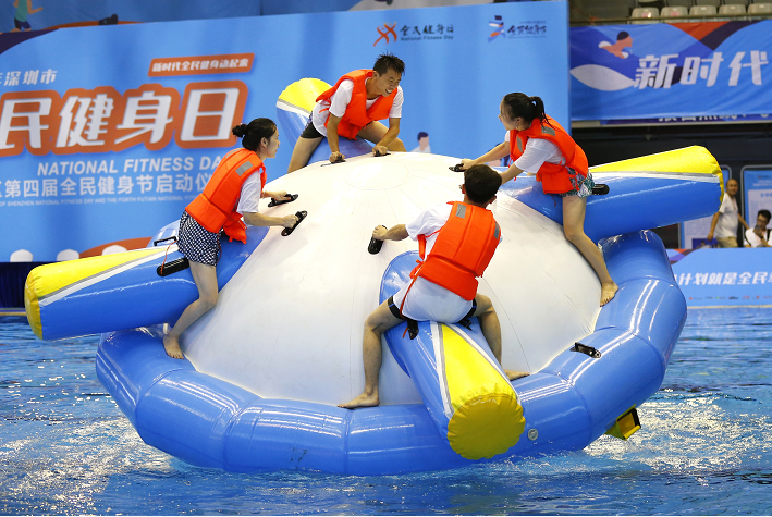啟動(dòng)儀式結(jié)束后,現(xiàn)場(chǎng)的泳池內(nèi)還開展了全民運(yùn)動(dòng)薈板塊的水上趣味運(yùn)動(dòng)會(huì)項(xiàng)目。