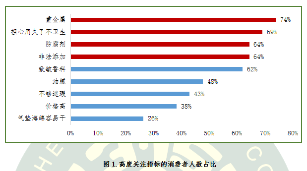 對(duì)于氣墊粉底這類兼具BB/CC霜和粉底功效的新型彩妝產(chǎn)品,消費(fèi)者最擔(dān)心的問(wèn)題是什么呢?項(xiàng)目調(diào)查數(shù)據(jù)顯示,關(guān)注氣墊粉底“重金屬”問(wèn)題的消費(fèi)者占比高達(dá)74%,“擔(dān)心氣墊粉底用久了不衛(wèi)生”的消費(fèi)者占比為69%,還有64%的消費(fèi)者關(guān)注“防腐劑”和“非法添加劑”問(wèn)題。