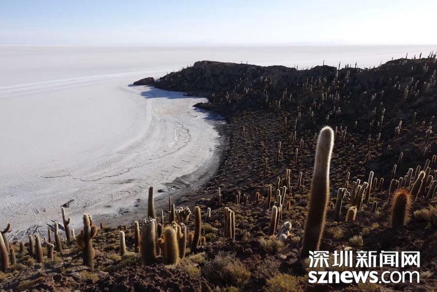 深圳新聞網(wǎng)訊 烏尤尼鹽沼中,有一個孤立的小山頭,猶如瀚海中的小島。島上長滿巨大的仙人柱,據(jù)說有的已經(jīng)生長了上千年。這種形狀各異、耐鹽堿、耐干旱的熱帶植物豐富了鹽沼的風光,構(gòu)成絕無僅有的世界奇觀。 李仁奇 攝