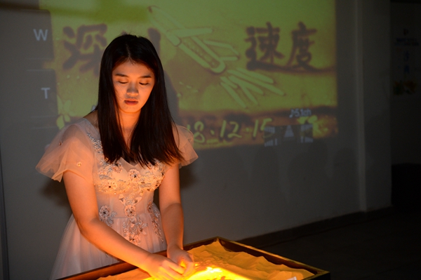 現(xiàn)場沙畫則以快速變換場景的手法,生動形象地展示了“深圳速度”?!皶r間就是金錢,效率就是生命”,深圳三天一層樓的城市建設(shè)速度,絕不是空中樓閣,而是看得見摸得著的。深圳發(fā)展,追光逐日。世界發(fā)展看中國,中國發(fā)展看深圳。
